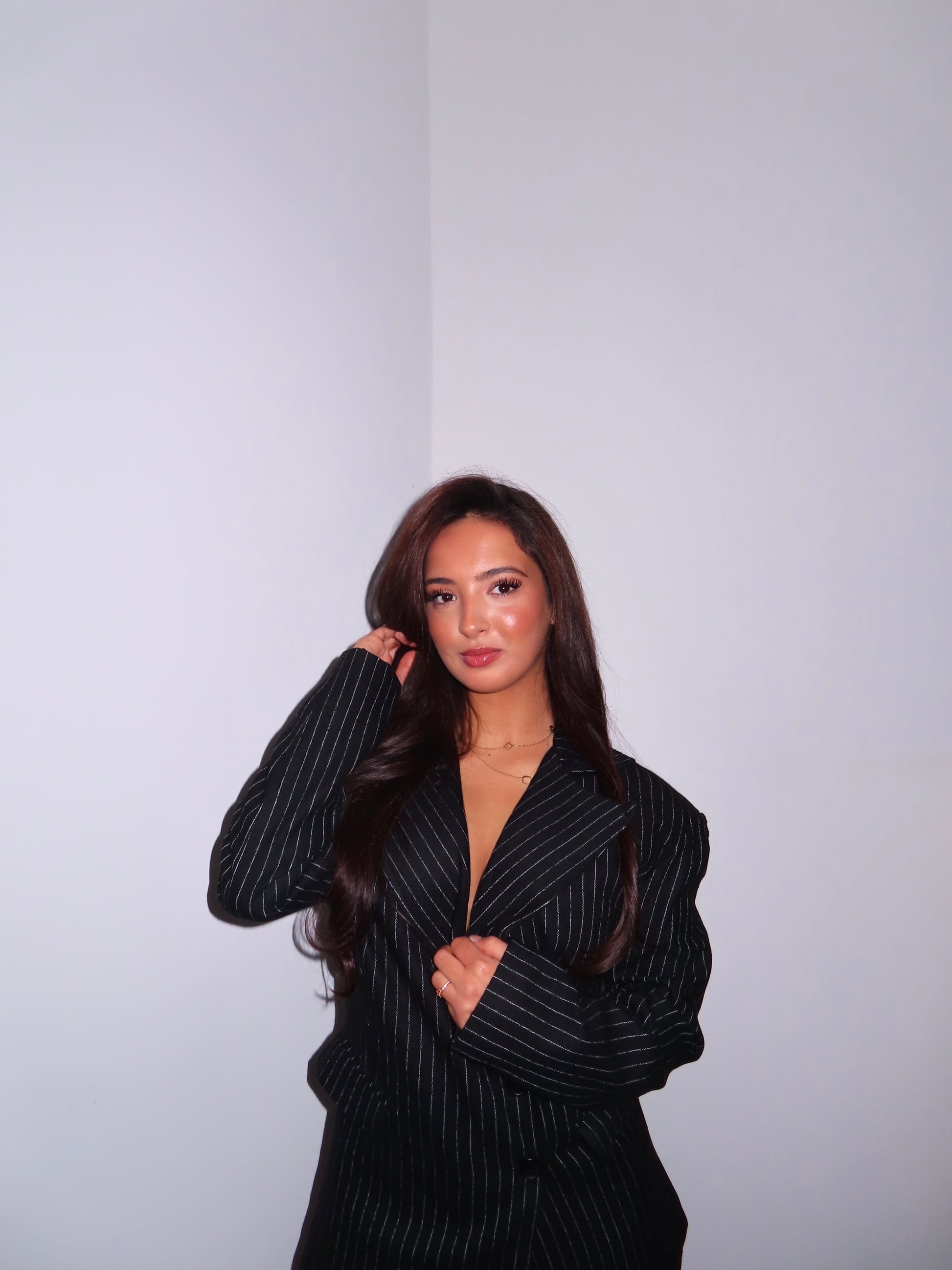 Meet your new boardroom-to-night-out essential. The Pinstripe blazer fuses sharp tailoring with a sleek brown pinstripe fabric, creating a bold, elevated silhouette. The structured blazer defines your waist while the matching trousers elongate your frame — delivering instant runway polish with zero effort.